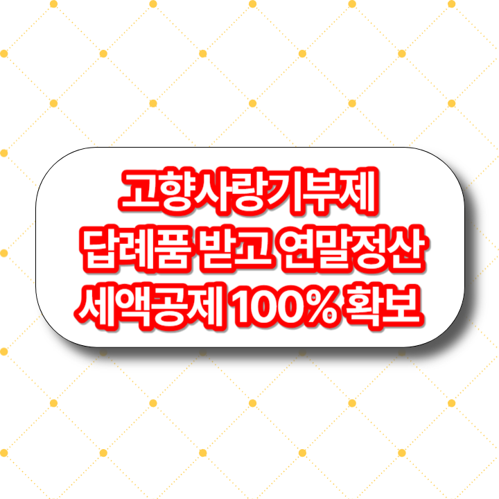 이번에 다룰 주제는 고향사랑기부제로 답례품 받고 연말정산 세액공제 100% 확보 입니다.